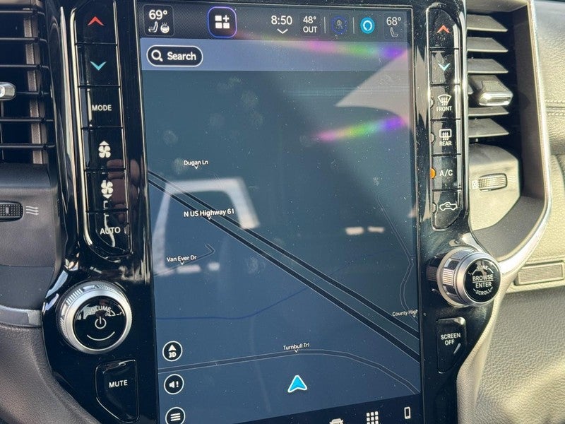 CALL (636) 775-2900 FOR MORE INFORMATION, ONE OWNER, CLEAN VEHICLE HISTORY NO ACCIDENTS, LOCAL TRADE, Bluetooth®, REAR BACK UP CAMERA, REAR PARKING SENSORS, APPLE CARPLAY / ANDROID AUTO, NAVIGATION / NAV / GPS, HEATED LEATHER SEATS, COOLED SEATS, HEATED STEERING WHEEL, CRUISE CONTROL, ADAPTIVE CRUISE CONTROL, AWD / 4 WHEEL DRIVE, REMOTE VEHICLE START, ALLOY WHEELS, SIDE BLIND ZONE ALERT, BED LINER, MEMORY SEAT, SATELLITE RADIO, 1500 Laramie, 4D Crew Cab, HEMI 5.7L V8 Multi Displacement VVT eTorque, 8-Speed Automatic, 4WD, Diamond Black Crystal Pearlcoat, Black Leather. Laramie Level 1 Equipment Group (12 Touchscreen Display, 2nd Row In Floor Storage Bins, 4G LTE Wi-Fi Hot Spot, Apple CarPlay, Auto High Beam Headlamp Control, Blind Spot & Cross Path Detection, Connected Travel & Traffic Services, Connectivity - US/Canada, Disassociated Touchscreen Display, Electric Shift-On-Demand Transfer Case, Foam Bottle Insert (Door Trim Panel), For Details, Visit DriveUconnect.com, For More Info, Call 800-643-2112, Front Door Accent Lighting, Front LED Fog Lamps, Global Telematics Box Module (TBM), Google Android Auto, GPS Antenna Input, GPS Navigation, HD Radio, Integrated Center Stack Radio, Integrated Voice Command w/Bluetooth®, LED Reflector Headlamps, Radio: Uconnect 5 Nav w/12.0 Display, Rain Sensitive Windshield Wipers, Rear Door Accent Lighting, Rear Power Sliding Window, Rear Window Defroster, Remote Tailgate Release, SiriusXM Radio Service, SiriusXM w/360L, and USB Host Flip), Quick Order Package 27H Laramie, Sport Appearance Package (Black Interior Accents, Body Color Exterior Mirrors, Body Color Front Bumper, Body Color Premium Power Mirrors, Body Color Rear Bumper w/Step Pads, Grille Surround 3 Body Color Tex 2 Black, RAM Grille Badge - Chrome, Sport Decal, Sport Performance Hood, and Wheels: 20 x 9 Premium Painted w/Inserts), 1500 Laramie, 4D Crew Cab, HEMI 5.7L V8 Multi Displacement VVT eTorque, 8-Speed Automatic, 4WD, Diamond Black Crystal Pearlcoat, Black Leather, #1 Seat Foam Cushion, 10 Speakers, 3 Rear Seat Head Restraints, 3.21 Rear Axle Ratio, 4 Way Front Headrests, 4-Wheel Disc Brakes, 48V Belt Starter Generator, ABS brakes, Adjustable pedals, Air Conditioning, Alloy wheels, AM/FM radio: SiriusXM with 360L, Apple CarPlay/Android Auto, Audio memory, Auto-dimming door mirrors, Auto-Dimming Exterior Driver Mirror, Auto-dimming Rear-View mirror, Automatic temperature control, Brake assist, Bumpers: chrome, Chrome Exterior Mirrors, Class IV Receiver Hitch, Compass, Convex Wide-Angle Exterior Mirror Insert, Delay-off headlights, Driver door bin, Driver Seat Memory, Driver vanity mirror, Dual front impact airbags, Dual front side impact airbags, Electronic Stability Control, Exterior Mirrors Courtesy Lamps, Exterior Mirrors w/Heating Element, Exterior Mirrors w/Memory, Exterior Mirrors w/Supplemental Signals, Front anti-roll bar, Front Center Armrest w/Storage, Front dual zone A/C, Front fog lights, Front License Plate Bracket, Front reading lights, Front Seat Back Map Pockets, Front wheel independent suspension, Fully automatic headlights, Garage door transmitter, Heated door mirrors, Heated Front Seats, Heated front seats, Heated Steering Wheel, Heated steering wheel, Illuminated entry, Leather steering wheel, Leather Trim 40/20/40 Bench Seat, Low tire pressure warning, Memory seat, Navigation System, Occupant sensing airbag, Outside temperature display, Overhead airbag, Overhead console, Panic alarm, ParkSense Front/Rear Park Assist w/Stop (DISC), ParkView Rear Back-Up Camera, Passenger door bin, Passenger vanity mirror, Pedal memory, Power 2-Way Driver Lumbar Adjust, Power 2-Way Passenger Lumbar Adjust, Power 8-Way Driver & Passenger Seats, Power door mirrors, Power driver seat, Power passenger seat, Power steering, Power windows, Power-Folding Mirrors, Radio data system, Radio: Uconnect 5 Nav w/8.4 Display, Rear 60/40 Folding Seat, Rear anti-roll bar, Rear seat center armrest, Rear step bumper, Rear Wheelhouse Liner