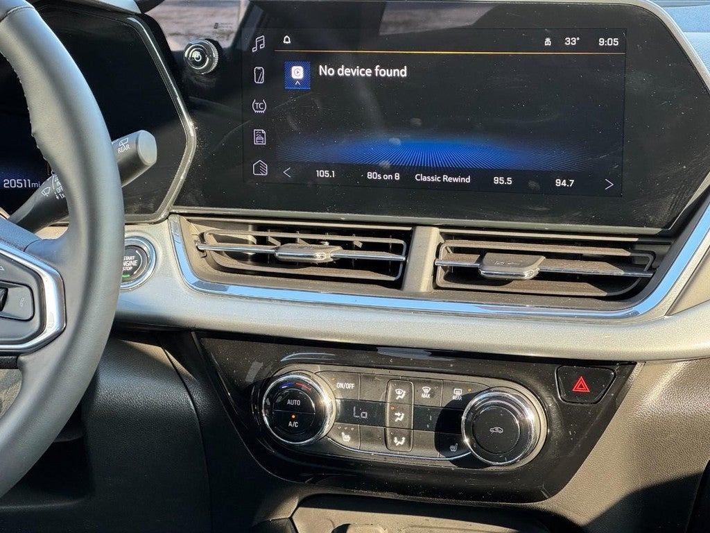 CALL (636) 775-2900 FOR MORE INFORMATION, ONE OWNER, Bluetooth®, REAR BACK UP CAMERA, APPLE CARPLAY / ANDROID AUTO, CRUISE CONTROL, ALLOY WHEELS, HEATED FRONT SEATS, Trax LT, 4D Sport Utility, 1.2L I3 DI Turbocharged DOHC 12V LEV3-ULEV70 137hp, 6-Speed Automatic, FWD, Sterling Gray Metallic, Jet Black With Blue Accents Cloth. License Plate Front Mounting Package, LT Convenience Package (Front Doors Keyless Open, Heated Driver and Front Passenger Seats, Heated Power-Adjustable Outside Mirrors, Heated Steering Wheel, and Wrapped Steering Wheel), Preferred Equipment Group 1LT, Trax LT, 4D Sport Utility, 1.2L I3 DI Turbocharged DOHC 12V LEV3-ULEV70 137hp, 6-Speed Automatic, FWD, Sterling Gray Metallic, Jet Black With Blue Accents Cloth, 2-Way Adjustable Front Head Restraints, 3.50 Final Drive Axle Ratio, 4-Way Manual Front Passenger Seat Adjuster, 4-Wheel Disc Brakes, 6 Speakers, 6-Speaker Audio System Feature, 6-Way Manual Driver Seat Adjuster, ABS brakes, Air Conditioning, Alloy wheels, AM/FM radio: SiriusXM, Auto High-beam Headlights, Automatic temperature control, Brake assist, Bumpers: body-color, Cloth/Evotex Seat Trim, Compass, Delay-off headlights, Driver door bin, Driver vanity mirror, Dual front impact airbags, Dual front side impact airbags, Electronic Stability Control, Emergency communication system: OnStar One Essentials, Exterior Parking Camera Rear, Front anti-roll bar, Front Bucket Seats, Front Center Armrest, Front reading lights, Front wheel independent suspension, Fully automatic headlights, Illuminated entry, Low tire pressure warning, Occupant sensing airbag, Outside temperature display, Overhead airbag, Overhead console, Panic alarm, Passenger door bin, Passenger vanity mirror, Power door mirrors, Power steering, Power windows, Premium audio system: Chevrolet Infotainment 3, Radio data system, Radio: AM/FM Stereo Audio System, Rear window defroster, Rear window wiper, Remote keyless entry, Security system, SiriusXM Trial Subscription, Speed control, Split folding rear seat, Spoiler, Steering wheel mounted audio controls, Tachometer, Telescoping steering wheel, Tilt steering wheel, Traction control, Trip computer, Variably intermittent wipers, and Wheels: 17 Inch Gray-Painted Machined Aluminum Alloy.